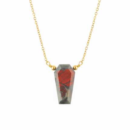 Bloodstone Coffin Necklace 925 Silver Gold-Plated March