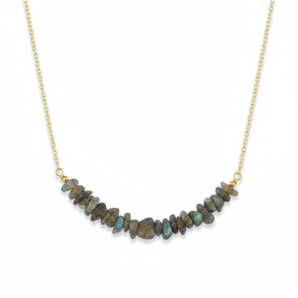 Labradorite Chip Bar Necklace Gold Plated Aquarius Zodiac