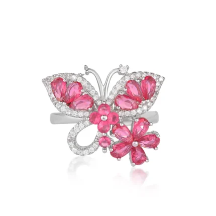 Elegant Pink Sapphire and Diamond Floral Butterfly Ring
